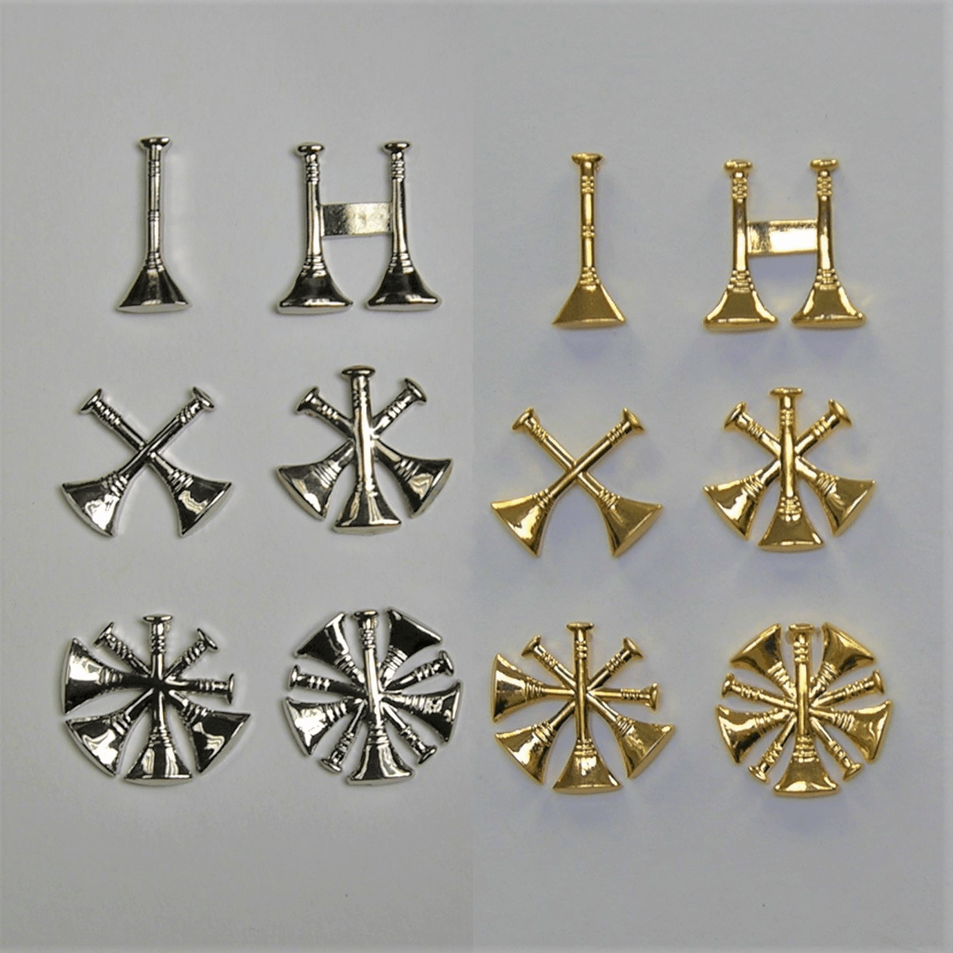 - ELC Accessories by Eiseman-Ludmar FD Collar Brass; Cut-Out Bugles (Horns).